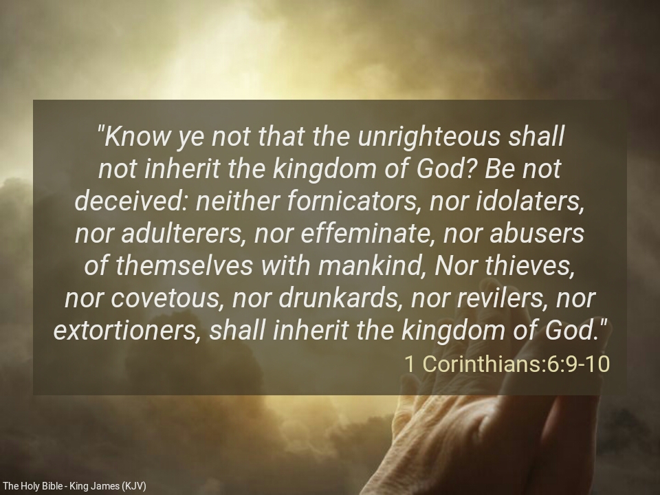 UNRIGHTEOUS SHALL NOT INHERIT THE KINGDOM.