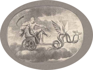 Saturn also emerges in modern society as the Grim Reaper, gathering in his bleak harvest of souls. Very few in modern society have recognized that Father Christmas, the Grim Reaper and Old Father Time are none other than this most loathsome of all the gods. However, an ancient would immediately recognize them all as being none other than Saturn. The emblems which identified Saturn are the same which identify Old Father Time and the Grim Reaper: scythes and something to mark the passage of time.